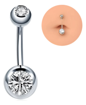 Piercing de Umbigo em Aço Cirúrgico 316L com Zircônia Brilhante